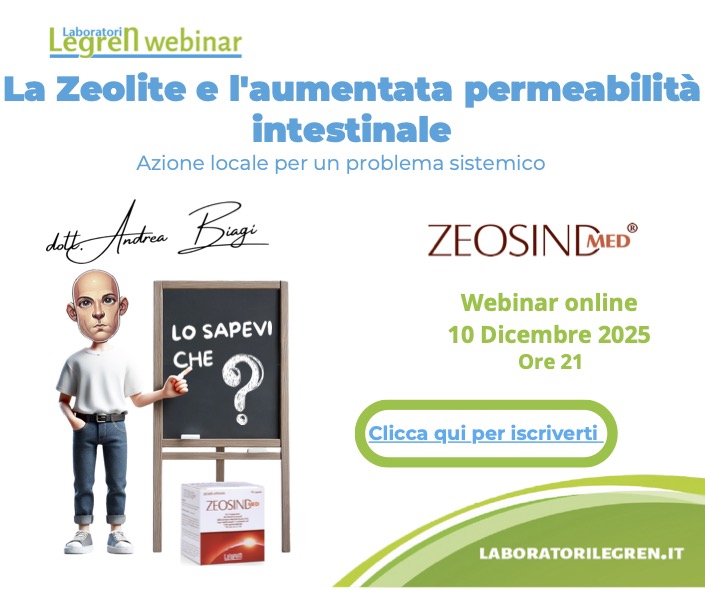 Proseguono i Webinar in pillole a cura del Dott. Andrea Biagi. Il 10 dicembre 2025 sarà dedicato a La zeolite e l'aumentata permeabilità intestinale.
